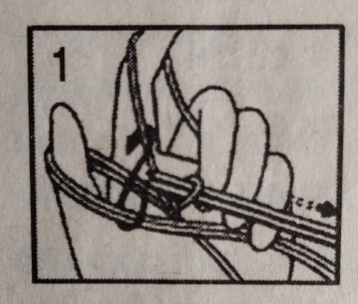 Одинарной нить идёт от клубка вокруг указательного пальца к спице ( рис. 2).