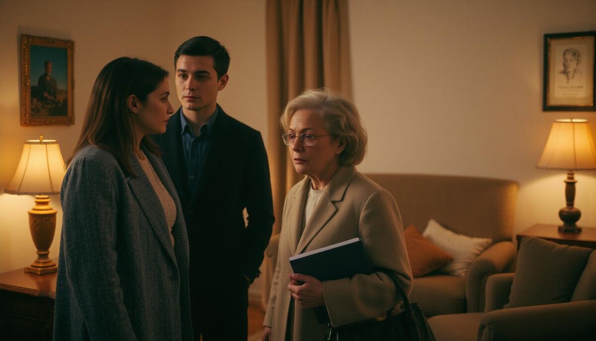 В этот момент домой как раз зашла Людмила Петровна с пакетами фруктов и овощей. Заметив напряжённые лица, она застыла на пороге гостиной.