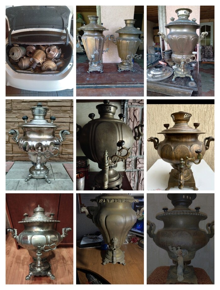 И так, что мы имеем? около 32 битых жизнью, некомплектных старых дровяных самоваров.