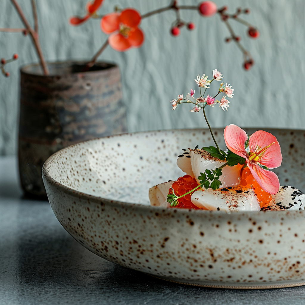 Если блюдо светлое (белый соус, сливочные текстуры), выгоднее использовать тёмную посуду. При ярких блюдах (красный соус, яркая зелень) наоборот отлично работают светлые тарелки. Контраст помогает сосредоточить внимание на самом блюде.