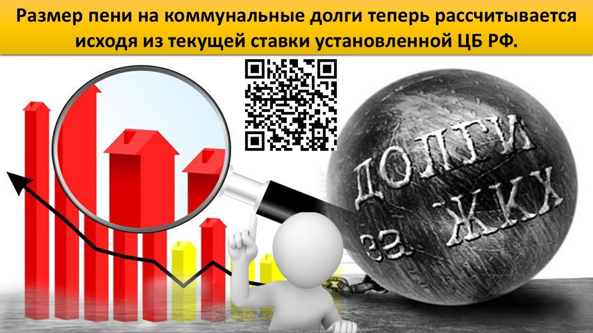 - Таким образом, размер пени на коммунальные долги с 2025 года будет рассчитываться исходя из текущей ставки, установленной ЦБ РФ. Напомним, что пеня рассчитывается на момент взыскания и сразу на весь размер долга – то есть даже на ту его часть, что образовалась до 2025 года.