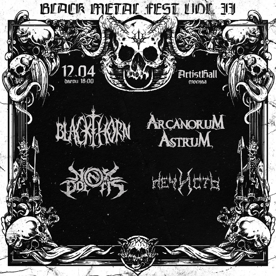 Вырвавшись из адских глубин в городские гущи Москвы, под покровом темного и мрачного апреля разразится громом в нестихающий шторм фестиваль Black Metal Fest Vol. 2! Этот вечер станет настоящим праздником для всех поклонников экстремального метала, готовых погрузиться в атмосферу мрачных ритуалов и мощной музыки. Фестиваль пройдет 12 апреля в московском клубе Артист Hall, который станет ареной для выступлений непревзойденных проповедников уникального мрачного метала. Эти группы заработали грозную репутацию как творческие силы и мастера развлекательных концертных шоу, которые оставляют зрителей в полном восторге. На сцене Black Metal Fest Vol. 2 выступят: Не упустите возможность стать частью этого уникального события! Фестиваль Black Metal Fest Vol. 2 обещает быть насыщенным, мощным и полным энергии, которая заставит ваши сердца биться в такт мрачной музыке.
