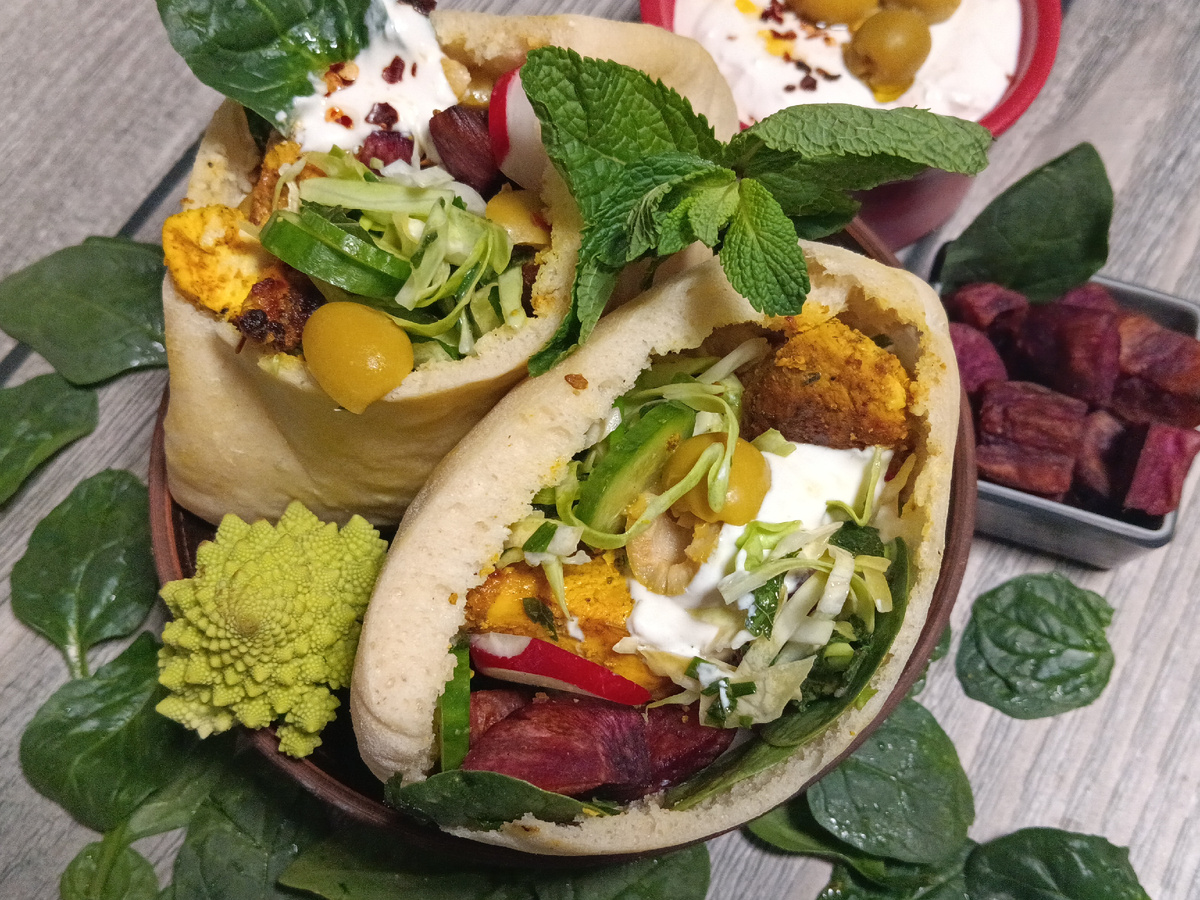 Не забудьте о свежих огурцах, редисе и оливках, которые придают блюду освежающую нотку и уникальный вкус. пита- 3 шт.