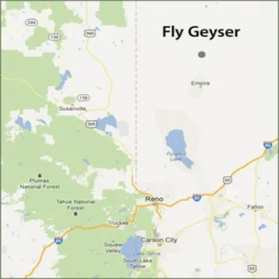Летучий Гейзер — это искусственное гидротермальное образование, расположенное на частной земле в пустыне Блэк-Рок. Он представляет собой конусообразную структуру, покрытую яркими зелёными, красными и оранжевыми отложениями минералов. Из гейзера постоянно выбиваются струи горячей воды, а вокруг него раскинулся маленький «оазис» с прудами и водными каналами, который резко контрастирует с сухой и суровой пустынной местностью.