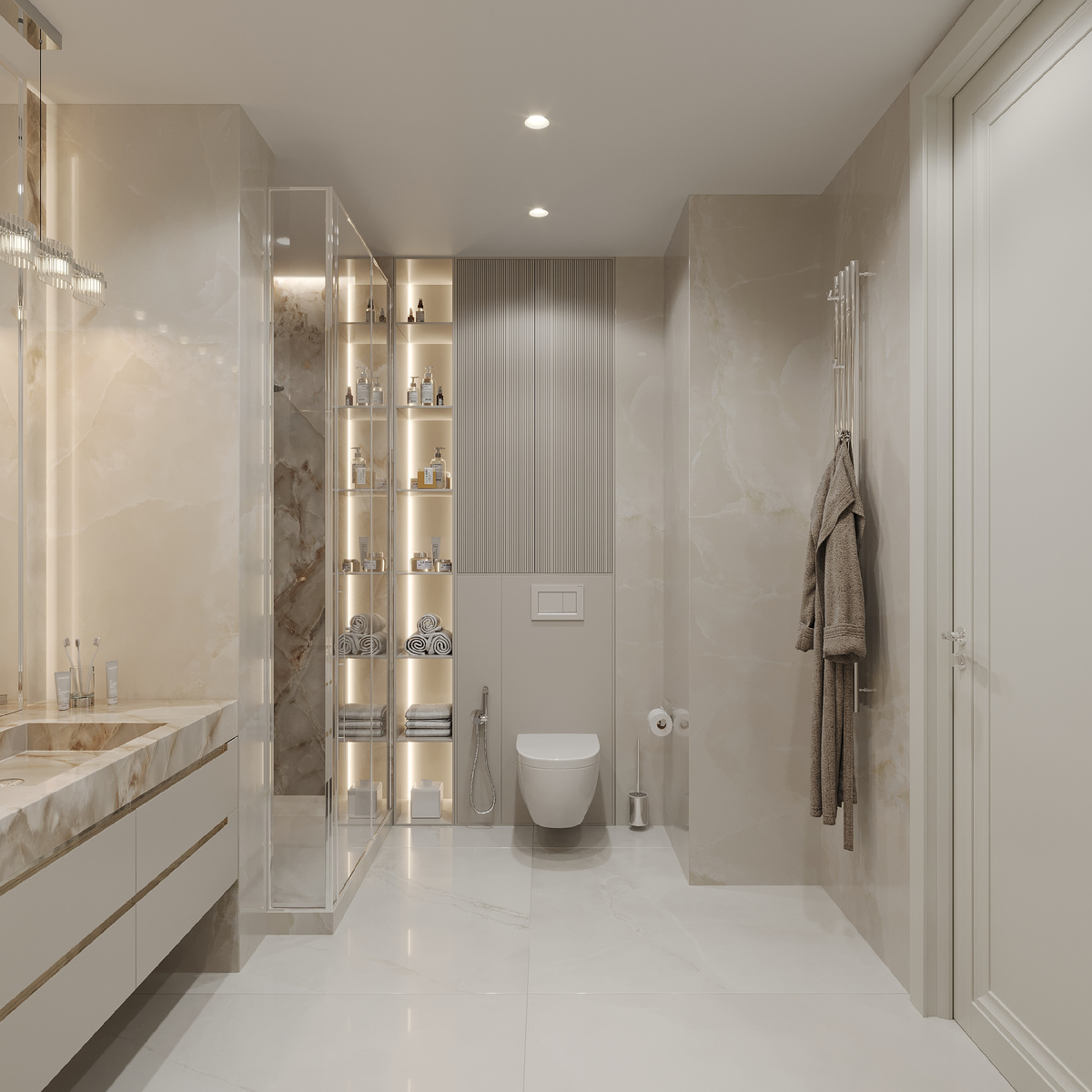 Ванная комната — это не просто функциональное пространство, а место, где начинается и заканчивается наш день. В 2025 году мы наблюдаем новые тренды в дизайне ванных комнат, которые делают их более стильными, комфортными и функциональными. Дизайнер Евгения Бубенщикова из студии дизайна Kontrast делится своими наблюдениями и рекомендациями по созданию премиального дизайна интерьера ванных комнат. Одним из главных трендов в дизайне интерьера в 2025 году является использование света. Современные ванные комнаты должны быть наполнены естественным светом, что создает ощущение простора и свежести. Большие окна, стеклянные перегородки и светлые бежевые натуральные оттенки стен и отделки помогут достичь этого эффекта. Стиль Ар-Деко возвращается в моду, и ванные комнаты не стали исключением. Этот стиль сочетает в себе элегантность и роскошь, что делает его идеальным для создания дизайна квартиры премиум класса. В 2025 году наблюдается тренд на использование натуральных материалов в интерьере. Д