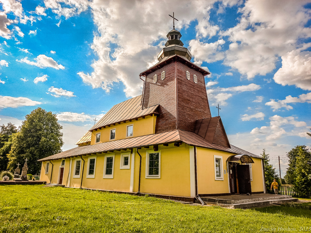 Менавіта тады, з 1805 па 1809 гады быў узведзены першы драўляны касцёл, які быў асвечаны пад тытулам Апекі Найсвяцейшай Панны Марыі. Будаўніцтва храма вялося пад наглядам ксёндза Антонія Сумістроўскага.