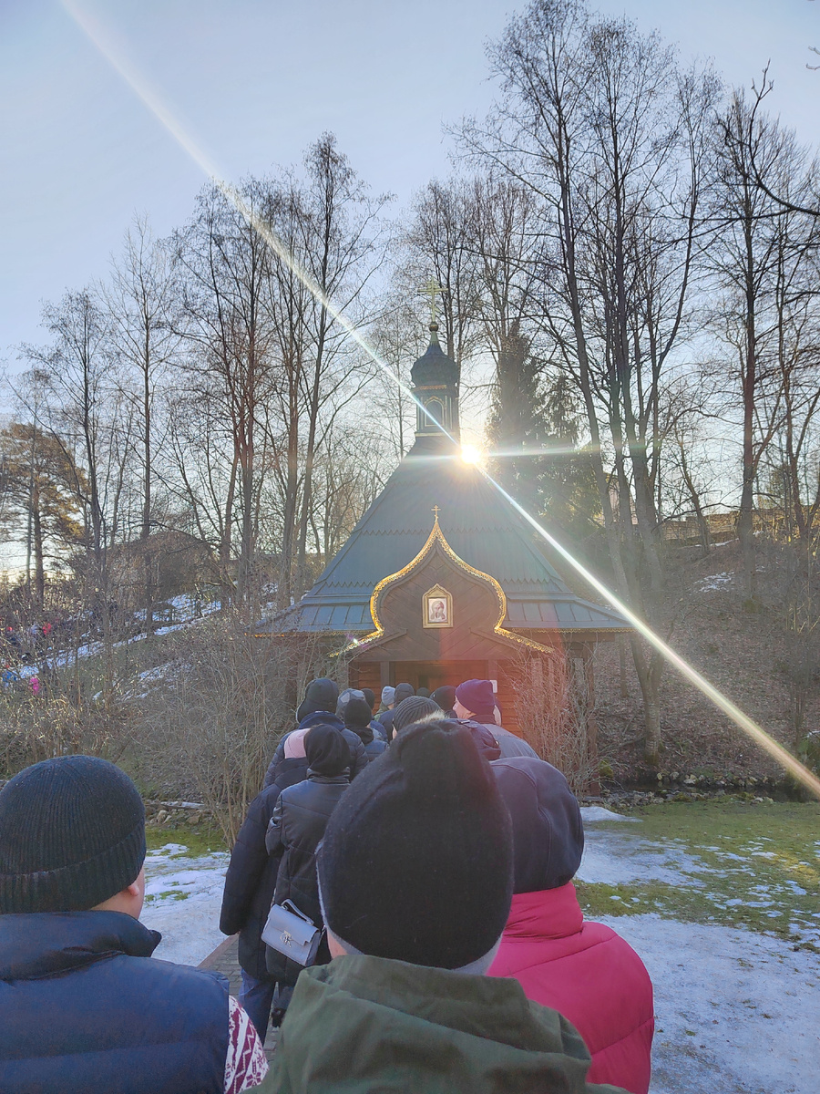 В купель я постоял не больше часа. Народу не много, но люди не торопятся. Наслаждаются тёплой водичкой, ярким весенним солнышком. Ощущение апреля, может даже начала мая, но никак не января.