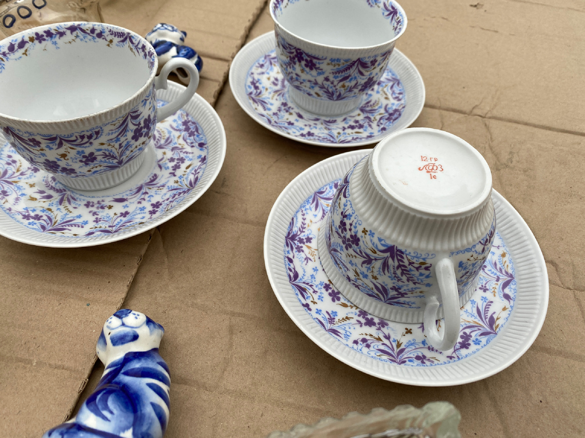 Уже традиционно в каждый свой поход на барахолку встречаю фарфор от ЛФЗ. В этот раз были чайные пары на форме Рельефная, автор Быструшкин Б.Д. На клейме указана 12 группа сложности. Интересно было бы узнать, с чем связано это присвоение, ни золота, ни ручной росписи я не увидела.