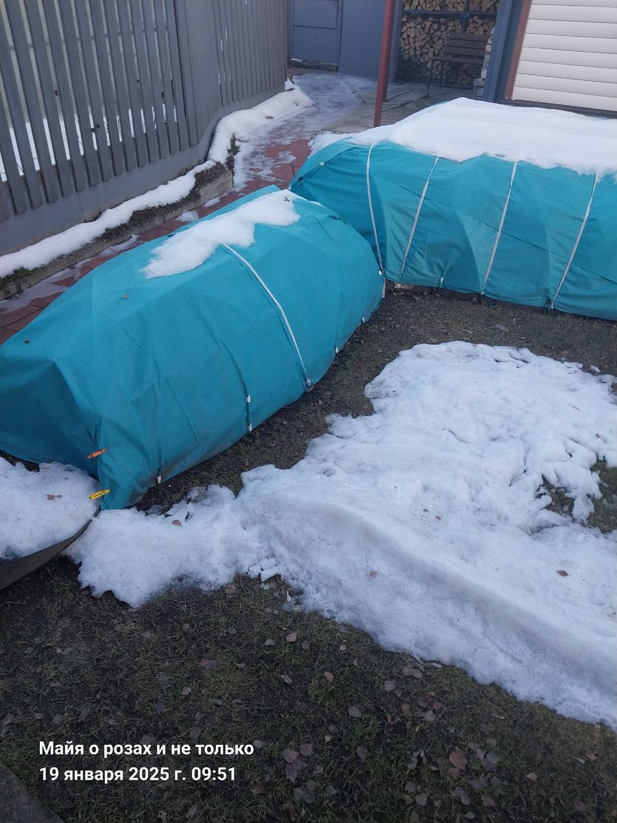 Первый раз в жизни и лишний снег с укрытий снимать не пришлось. Тоже, наверное потому, что я соорудила усиленное укрытие 😅