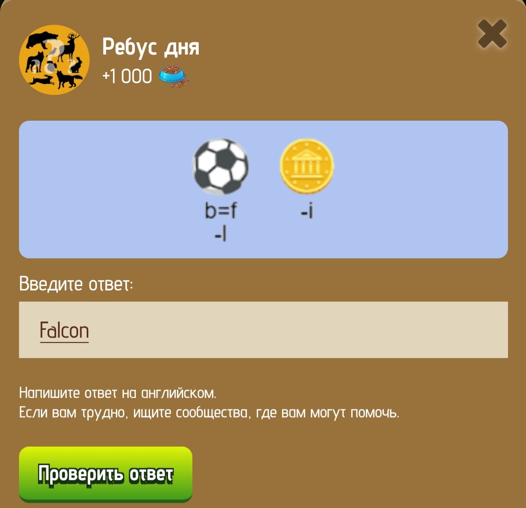 Ребус дня в ZOO от 19 января 2025 Ответ: Falcon Расписания подарочных коробок выкладываем регулярно в нашем телеграм канале - ТУТ Ответы на загадки и ребусы нужно вводить в разделе "Задания". Zoo - это игра, где нужно развивать свой зоопарк и собирать игровые монеты. Улучшаем животных, вступаем в альянс и выполняем задания.