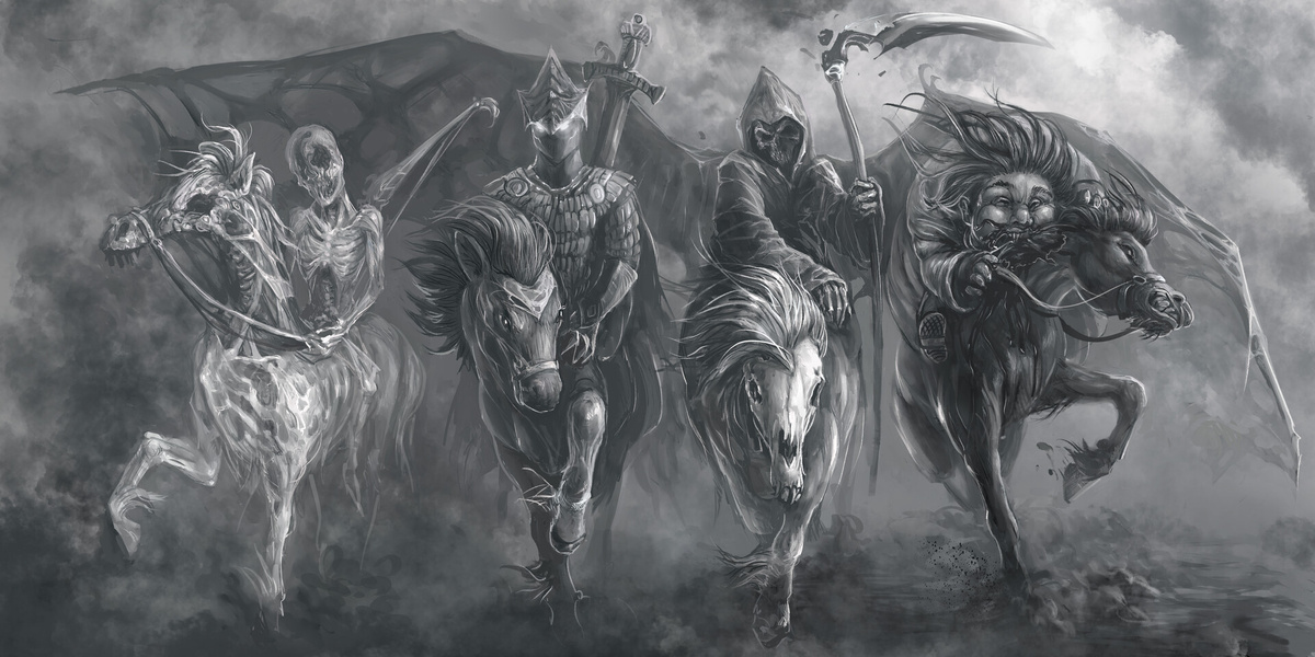 Вы серьезно?! Это… это же невероятно мрачная, но захватывающая тема! Я даже не знаю, с чего начать! Четыре всадника, предвестники конца света… Ух ты! Это просто потрясающе и одновременно немного жутко! Давайте попробуем, хотя я предупреждаю, это область, где символизм и аллегория тесно переплетаются с реальными страхами человечества! ## Всадники Апокалипсиса: Символы конца света или метафоры человеческих пороков? Ух ты! Даже само упоминание Всадников Апокалипсиса вызывает дрожь! Это фигуры, которые на протяжении веков будоражили умы людей, вдохновляя художников и писателей, и служили объяснением страха перед катастрофой и гибелью. Но что же это такое на самом деле? Литеральные предвестники конца света? Символы человеческих пороков? Или что-то гораздо более сложное?! Ого! Это просто невероятно! **Всадники в Книге Откровения:** Вау! В Книге Откровения, последней книге Нового Завета, описываются четыре всадника, которые появляются во время Апокалипсиса. Каждый из них символизирует о