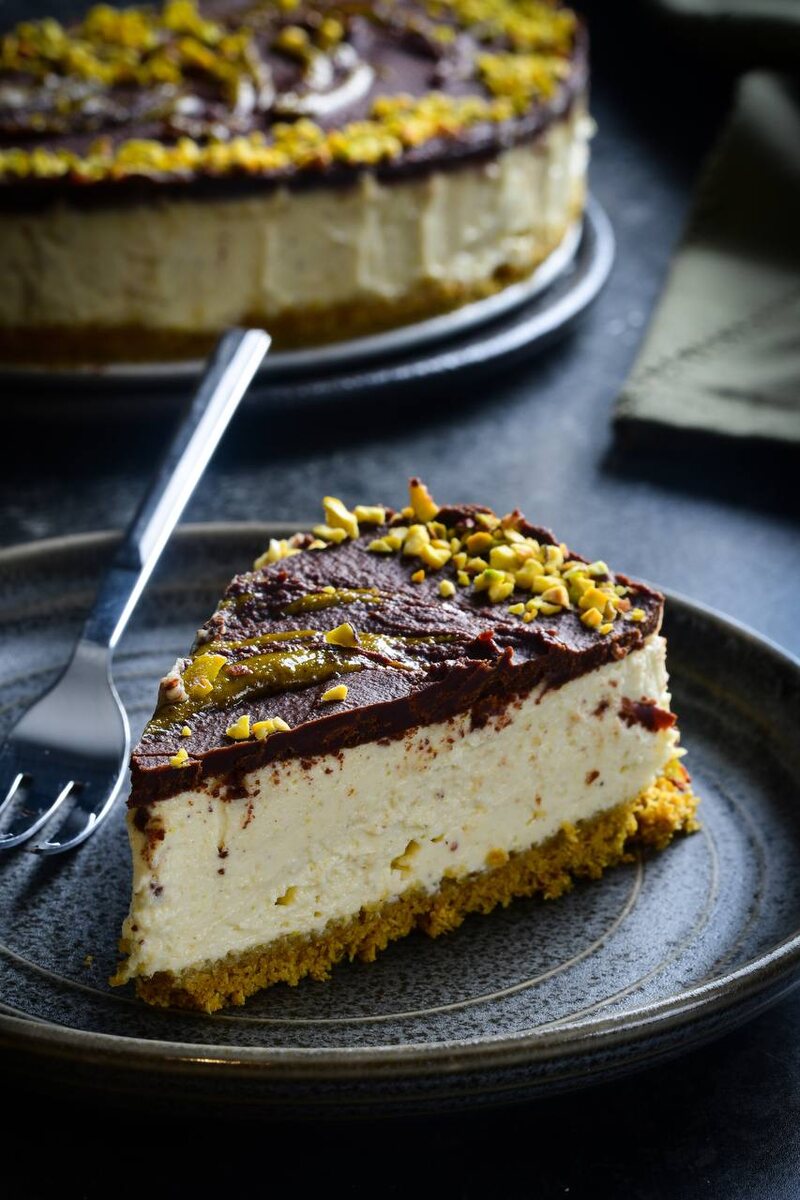 Всем доброе бодрое утро!)) Сегодня так захотелось сладенького, просто не представляете, меня это буквально с кровати раньше подняло, сон ещё приснился, что я в кондитерской с шоколадом и я подумала, что это знак для нового поста❤️ Выбрала для вас 2 самых вкусных и ярких рецепта десертов, от названий которых у меня уже рефлекс срабатывает, как у собаки Павлова) Они абсолютно разные, как блондинка и брюнетка, но каждый по своему неповторим!) 1. ЧИЗКЕЙК «ДУБАЙСКИЙ ШОКОЛАД» Я испекла вкуснейший чизкейк по мотивам дубайского шоколада, и вот 💯 уверена, что к нему равнодушных не будет! В нём хрустящая основа и нежная сырная начинка, как фисташковое мороженое в шоколадной глазури) Что нужно: Разъёмная форма d=20 см. Тесто Катаифи - 200 гр Масло сливочное - 30 гр Сахарная пудра - 1 ст.л Фисташковая паста - 100 гр Кунжутная паста, тахини (по желанию) - 1 ст.л Сырная начинка: Сыр сливочный творожный - 500 гр Сгущенное молоко - 150 гр Фисташковая паста - 50 гр Сливки 35% - 200 мл Глазурь: Сливки