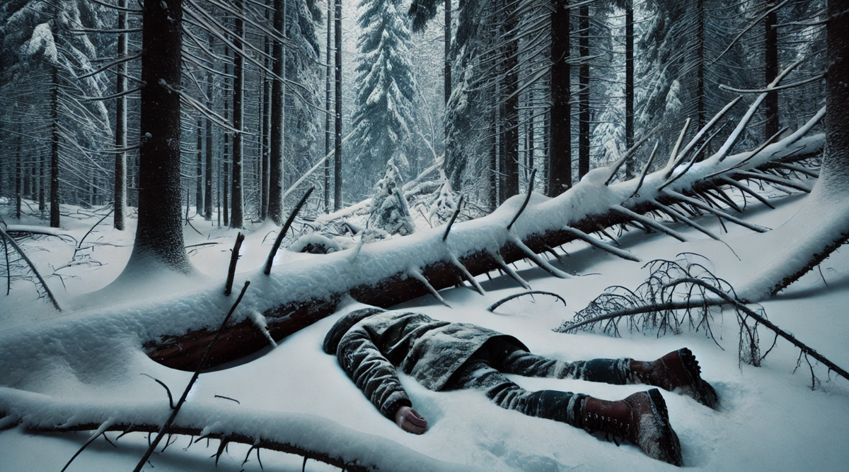 Когда он поднял взгляд снова, на тропе показалось нечто странное. Впереди, на фоне ещё более темного леса, выделялось нечто большое. Алексей прищурился, остановился и увидел. Дерево. Огромный ствол, сломанный, лежал поперек пути, словно некто великан швырнул его сюда нарочно. Ветки торчали во все стороны, будто когти гигантского зверя, застывшего в прыжке. Снег укрыл ствол, как одеяло, но даже так видно было, что это дерево не старое, не гнилое. Свежий слом, острые осколки на месте разрыва. Алексей подошел ближе, медленно, почти на цыпочках, словно не хотел потревожить мёртвую тишину вокруг. Внимание его привлекли следы. Их было немного, но они уходили к дереву, словно кто-то спешил сюда, а затем… исчез. Либо ушел по сугробам, либо остался тут. Но Алексей никого не видел.