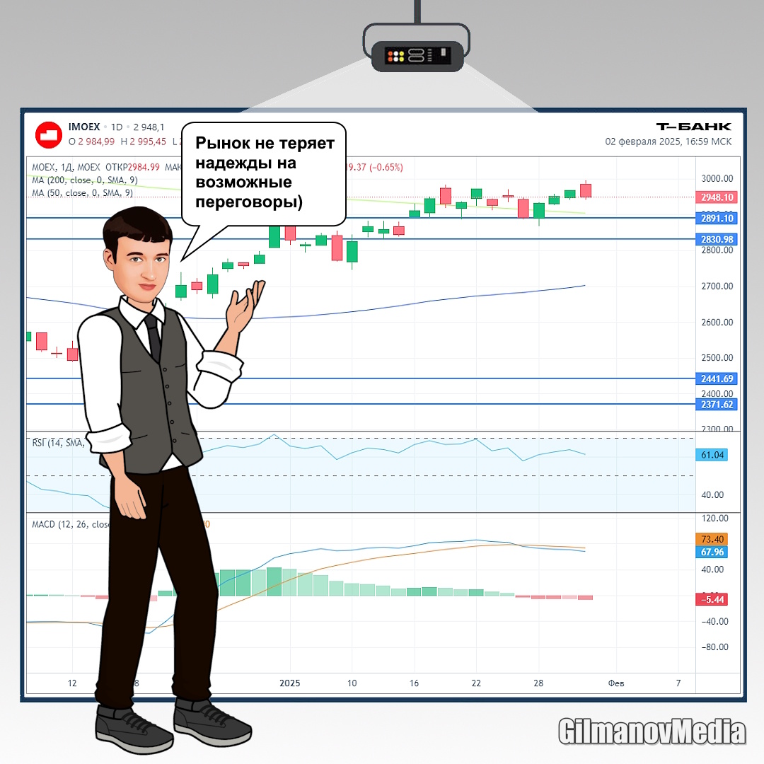 Привет всем! 👋 Индекс Мосбиржи 31 января закрылся на уровне 2948,1 пунктов, как и за прошлую неделю рынок опять показывает нулевой результат +0,03% 📈 откуда начинаем туда и возвращаемся в конце недели. Хотя в пятницу в моменте было и 2995, но 3000 уровень пока не поддается. Это говорит о том, что участники рынка осторожничают и ожидают конкретных новостей с геополитики, а также какой-либо информации по предстоящему заседанию ЦБ. Чтобы определится, куда все таки идти, на дальнейший рост, или в падение. Препятствие к росту индекса поспособствовало еще снижение цены на нефть. Так, нефть Brent за неделю потеряла в цене на -1,56% 📉 и закрылась 76,36 $. Нефтяной сектор за неделю в основном в минусе или нейтрально, Сургутнефтегаз -2,7%, Роснефть -1,7%, Лукойл -0,4%, Татнефть +0,2%, Газпром нефть +0,58%. Зато продолжил хорошо себя чувствовать Газпром, за неделю +2,2%, закрылся на цене 140,76 руб., но на пике 31 января доходил даже до 143 руб. Участники рынка ставят на нормализацию отношен