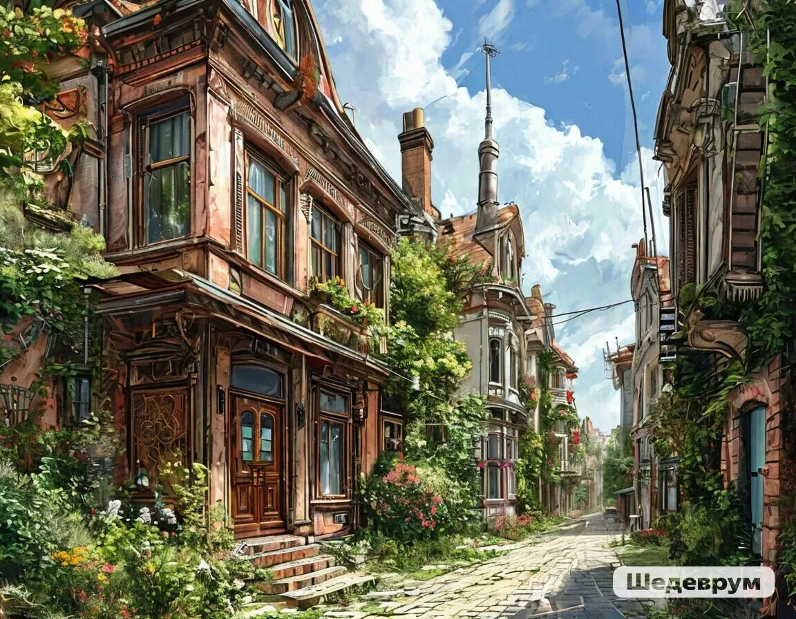 Я спустился с холма и оказался на одной из центральных улочек. Дома здесь были невысокие, в два-три этажа, построенные из дерева и светлого камня. На крышах, к моему удивлению, росли плодовые деревья и благоухающие цветы, создавая приятную тень и сказочную атмосферу.