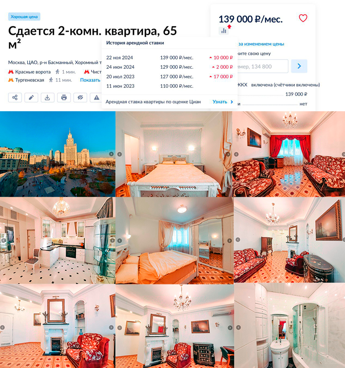 ❗️ Помним классику: «Москвичи - хорошие люди, только квартирный вопрос их испортил» Думаю, это можно отнести к большинству мест, где люди в принципе проживают)) 🏠 Пещера, как символ и безопасности и социальной принадлежности - это основа основ! Но вот в Москве что-то явно не так с ценами... А в целом, в стране сильно не так с ценами, арендой, ставкой, ипотекой. И любая неэффективность может быть использована. Недвижимостью занимаюсь лет двадцать пять. Нравится, спору нет, но не всегда. Вот под семейные задачи изучаю квартиры. И по-прежнему цена аренды, ставка, не говоря уже про ипотеку, находятся на разных планетах! Приведу конкретный пример: 1️⃣ Квартира (фото в приложении) в самом Центре, рядом с офисом, изучал этот район, так как знаю его отлично. 2️⃣ Аренда – 139 000 в месяц. При этом видно, что цену все время поднимали со 110 000. И еще в ноябре созванивался с собственником, было интересно узнать из первых уст, что и как. Цену, конечно, готов снизить, и уже два месяца она так и с