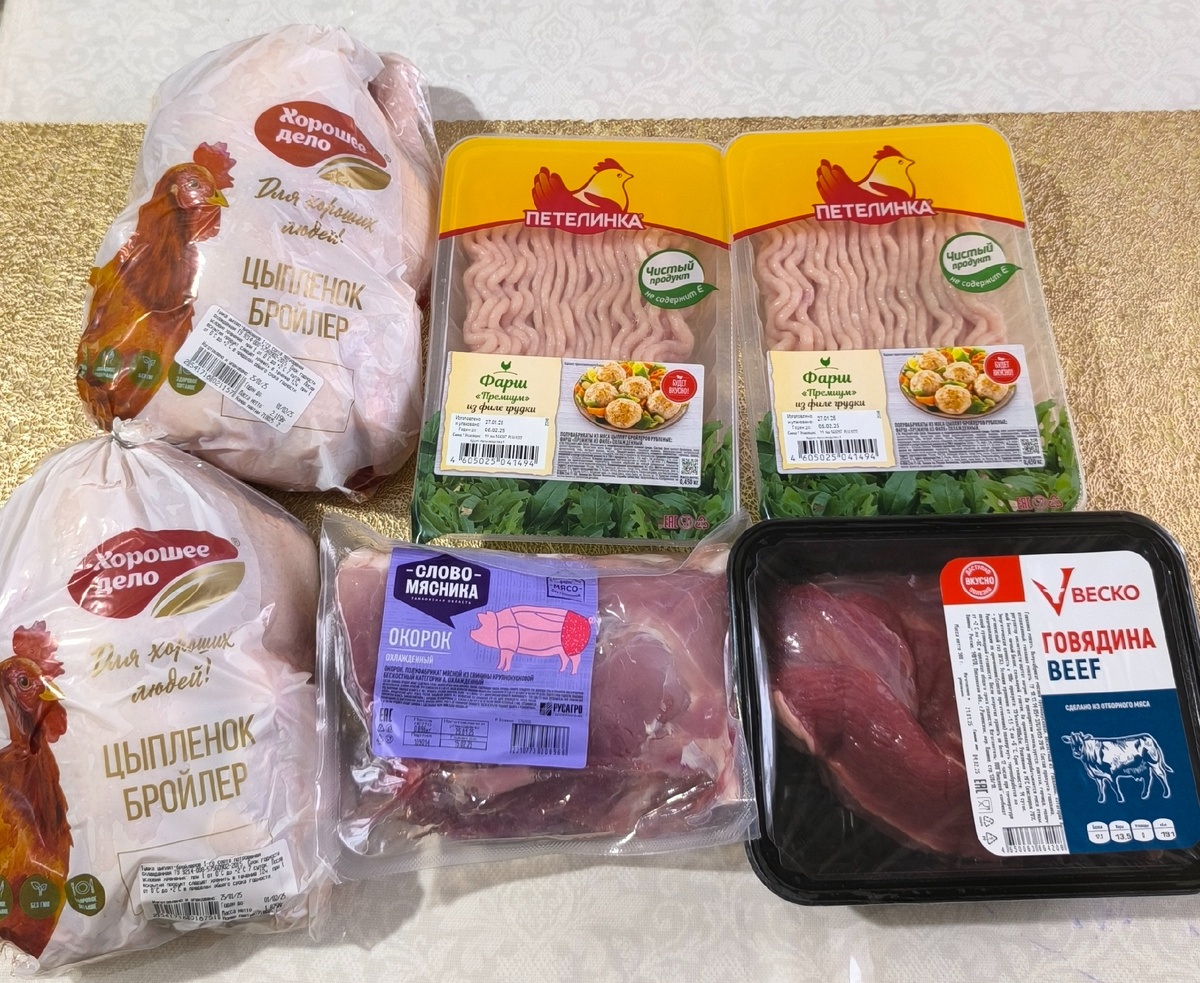С нового года праздник пришел и в наш дом! К нам теперь доставляют из магазина "Пятерочка", причем как через Купер, так и на прямую. Это уже второй заказ из этого магазина и пока обошлось без косяков, надеюсь и дальше эта сеть будет радовать нас большим ассортиментом и качеством. В этот раз заказ был на внушительную сумму. Но не о чем не жалею! Что же заказала: 1. Мясо. - Говядина. Вызвала двоякие впечатления. Она не пахла вообще не чем. Как-то странно, я привыкла, к тому что говядина пахнет парным молоком. В остальном все супер, срезала пленок по минимуму. Тушила с сушеными грибами в мультиварке 1.5 часа. Мясо получилось нежным и очень вкусным. - Бройлер. Наверное лучшая курица которую я покупала за последние несколько лет. Мясистая, жира по минимуму. Кожа тонкая. Не скользкая с приятным ароматом. - Окорок. Взяла под запекание одним куском. Лежит ждет своего часа. - Фарш "Петелинка". По мне так это лучший куриный фарш в упаковках. Брала для куриных вафель, подсели на них. 2. Яйца. От