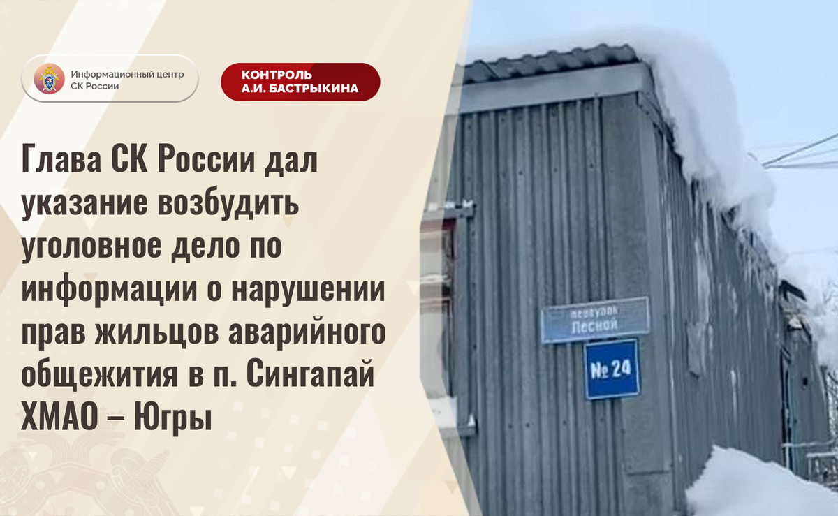 Глава СК России дал указание возбудить уголовное дело по информации о нарушении прав жильцов аварийного общежития в п. Сингапай ХМАО – Югры
