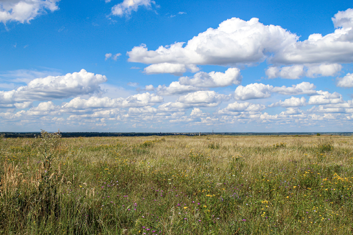 В синем небе безмятежно проплывают стада белых облаков. Неровной линией вьется по полю натоптанная узкая тропинка, приглашая прогуляться.