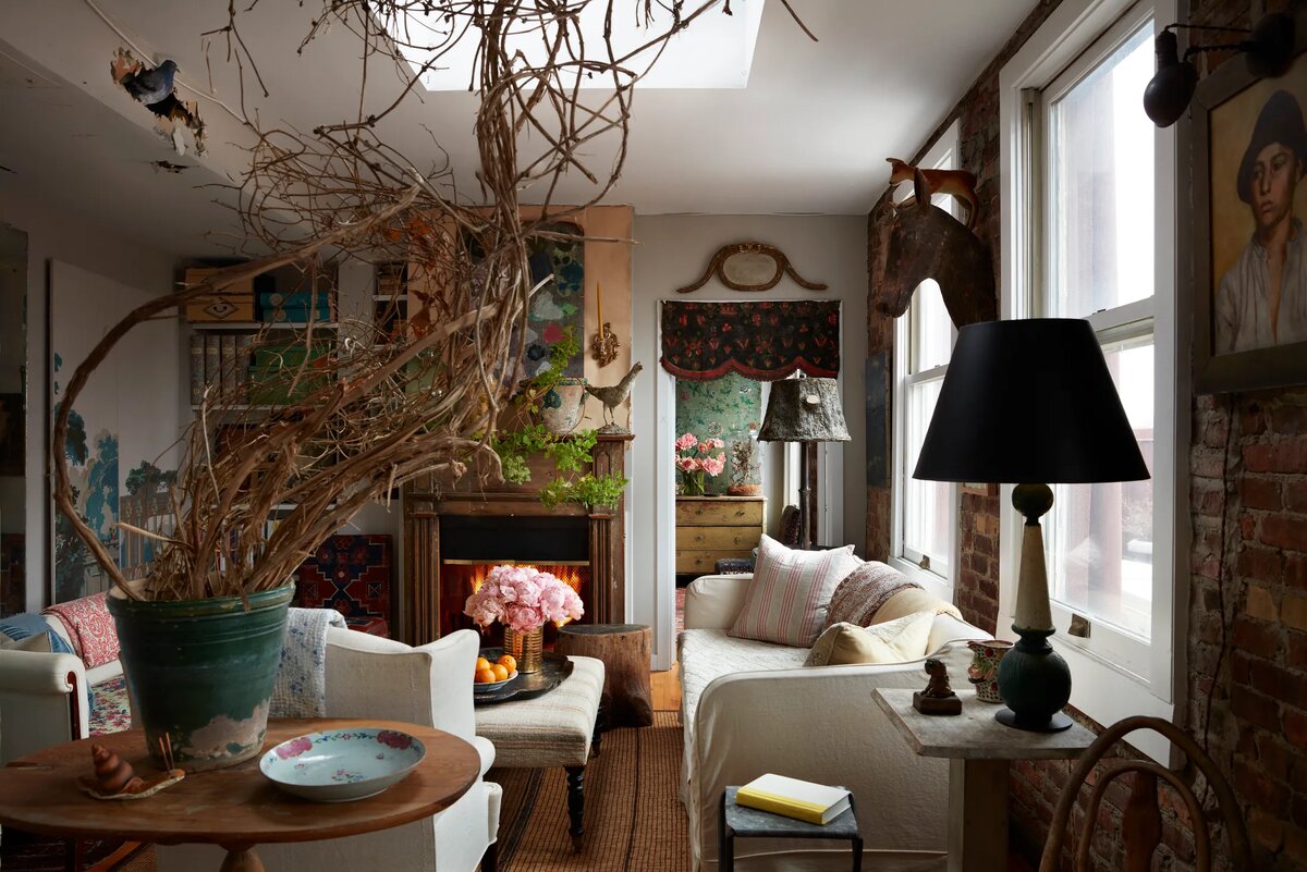Фотограф: Stephen Kent Johnson Источник: Curbed Запредельный уровень богемности — сложно поверить, что эта квартира находится в пентхаусе на 5-й Авеню, а её хозяин, Джон Дериан, — успешный предприниматель с тремя магазинами в Нью-Йорке и филиалами за его пределами. Соответствует этим вводным только то, что бизнес Дериана крутится вокруг мебели и интерьерного декора, которым, собственно, здесь всё и обставлено. Ещё он пишет книги, выпускает коллекции с Astier de Villatte и другими известными брендами, и вообще у него всё хорошо. Если вы видите дыру в стене — а она там и правда есть, — то только потому, что хозяин ещё не успел окончательно довести квартиру до ума. Слишком занят. Кстати, начинал Дериан с того, что мастерил деревья из пуговиц и ракушек для цветочного магазина в Бостоне, потом увлёкся декупажем и в 1992 году переехал в Нью-Йорк, где постепенно раскрылись и другие его таланты. Эту квартиру он купил в начале 2020 года, прямо перед пандемией. И это была идеальная инвестици