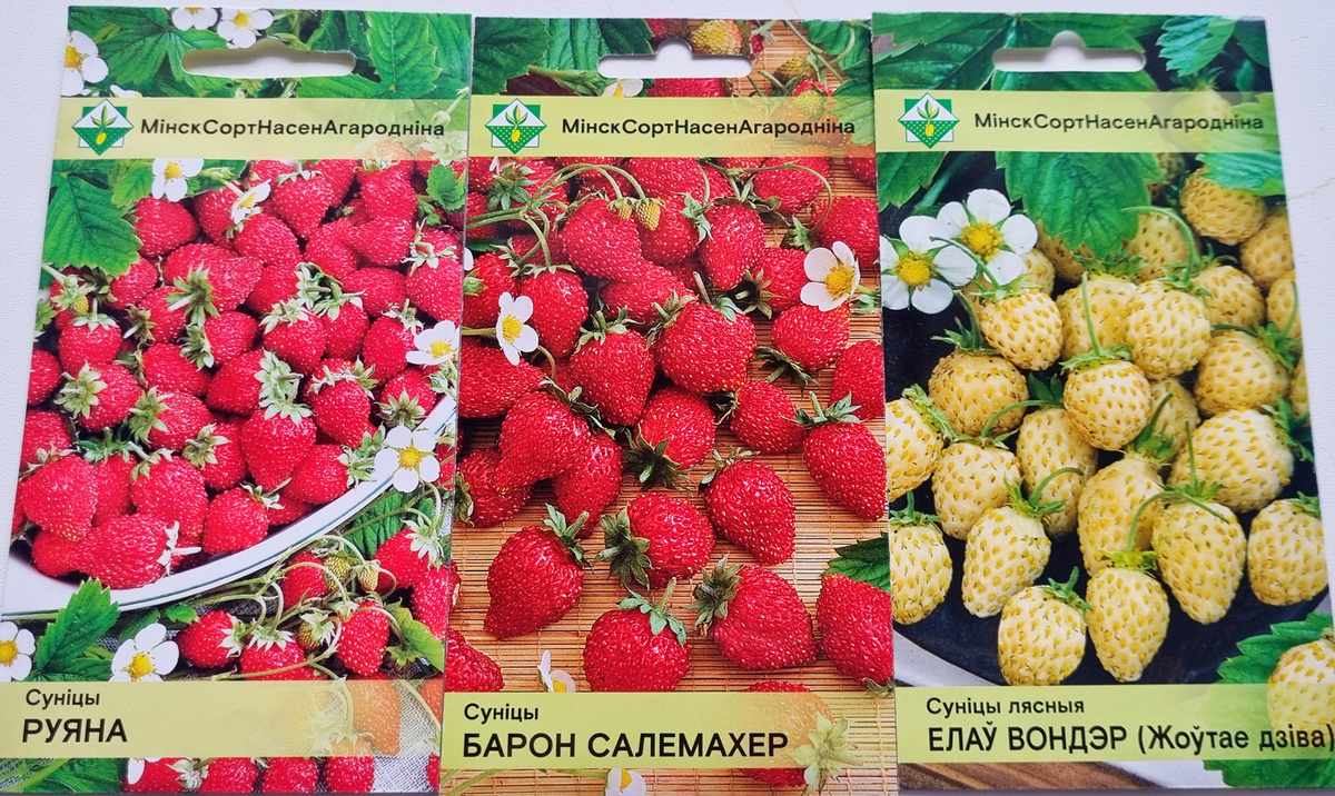 Ремонтантная земляника Барон Солемахер, Руяна, Еллоу вондер (Жоўтае дзiва - желтое чудо)