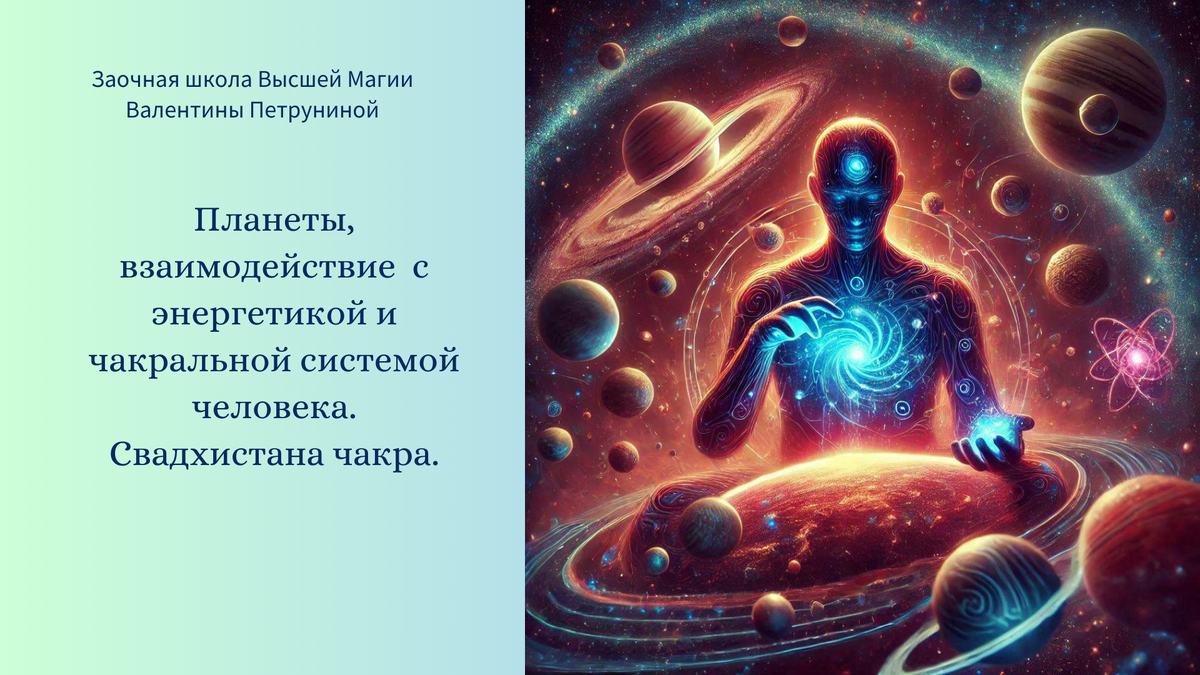 Вторая чакра, Свадхистана чакра – центр воспроизведения (половой центр), связана с эфирным телом и проекцией Юпитера. Юпитер позволяет человеку расширить эфирное тело и запасти в нём энергию и, таким образом, создавать материальные формы, которые при этом являются привлекательными в сексуальном плане, даже если не очень выражены на физическом плане. Дисбаланс в этой чакре приводит к завышенным претензиям, человек хочет быть принцем, героем, властелином. Он часто меняет роли, самолюбив и склонен к самолюбованию. При разбалансировке Свадхистана – чакры возникает фрустрация, тревога, страх. При гармоничной связи с Юпитером, его энергия активизирует умственную деятельность и проявляется через возможность оказывать влияние на окружающих, производить чарующая впечатление. Раскрытие Свадхистана чакры дает возможность контроля над болезнями, способности к целительству.