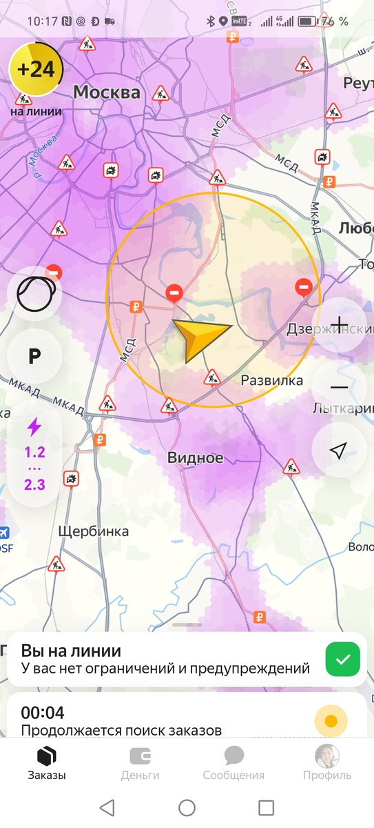 После 16:30 заказы начали прям падать. Меня и к дому на Домодедовскую занесло, потом опять на Братиславскую вернулась.