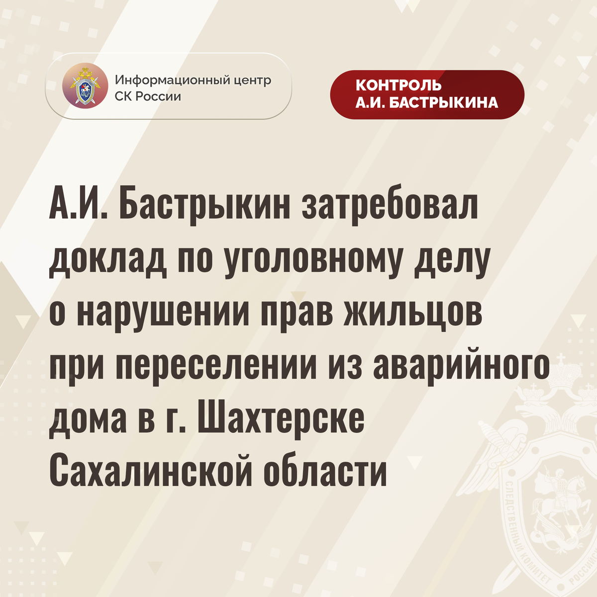 А.И. Бастрыкин затребовал доклад по уголовному делу о нарушении прав жильцов при переселении из аварийного дома в г. Шахтерске Сахалинской области