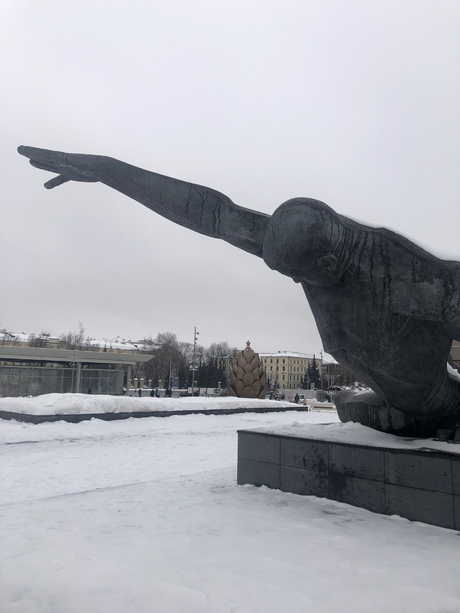 Вход в парк заметин издалека. Он популярен у казанцев. Решила выяснить что там интересного. Это старейший парк Казани, который был популярным местом отдыха ещё в XIX веке. В советские времена парк получил нынешнее название и стал центральным парком Казани. Мемориальная зона. Справа от входа расположена памятная композиция, посвящённая героям Великой Отечественной войны. Слева от входа возвышается популярный торговый центр, рестораны и отель "KOPSTON" На остановке "Парк Горького" установлен интересный арт- объект Он появился перед Новым годом: арт- объект с подсветкой "Золотая шишка" В народе её ещё назвали "Ёлкой- шишкой". Интересно, останется она здесь надолго? Изготовлен основательно. В парке устроены многочисленные аттракционы. На фото ниже - закрытый ледовый каток. Заходила во внутрь, народу много. Два входа: один для посетителей со своими коньками, другой для тех кому нужен прокат. Есть небольшое кафе с хот- догами. А дальше , по ухоженным тропинкам расположены разнообразные п