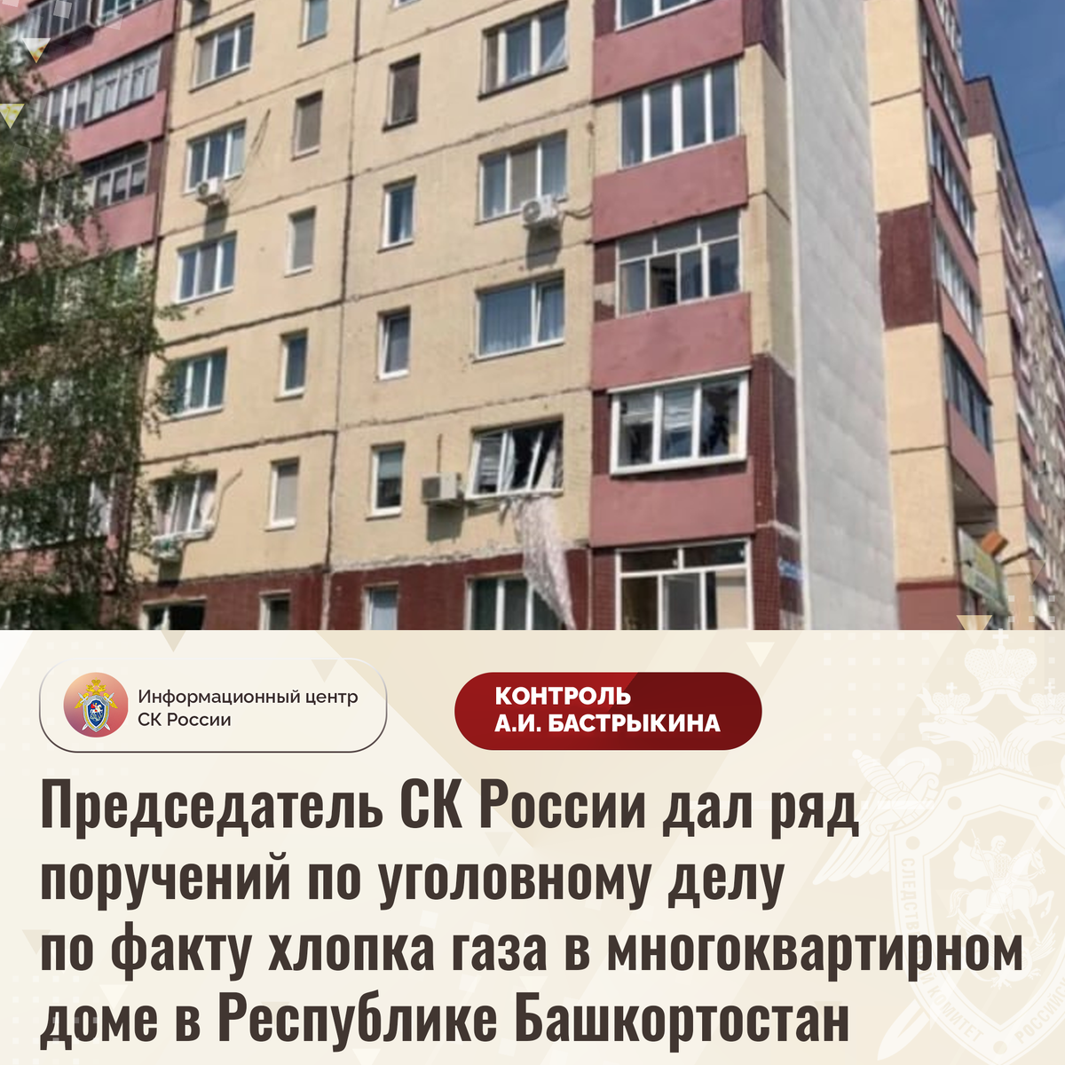 Председатель СК России дал ряд поручений по уголовному делу по факту хлопка газа в многоквартирном доме в Республике Башкортостан В приёмную Председателя СК России А.И. Бастрыкина в «ВКонтакте» обратилась жительница Республики Башкортостан. Она выражает несогласие с ходом установления обстоятельств хлопка бытового газа, произошедшего в июле прошлого года в многоквартирном доме по улице Артёма в городе Стерлитамаке. В результате происшествия погибла женщина, а также пострадали другие жильцы, в том числе дети. Также сообщается, что жители продолжают проживать в здании, где до сих пор не работают лифты. Заявительница указывает на неполноту и затяжной характер расследования. Ранее ситуация освещалась в СМИ. А.И. Бастрыкин поручал представить по ней доклад. В СУ СК России по Республике Башкортостан по поступившему обращению начата процессуальная проверка. Также в региональном следственном управлении расследуется уголовное дело. Председатель Следственного комитета Российской Федерации Алекс