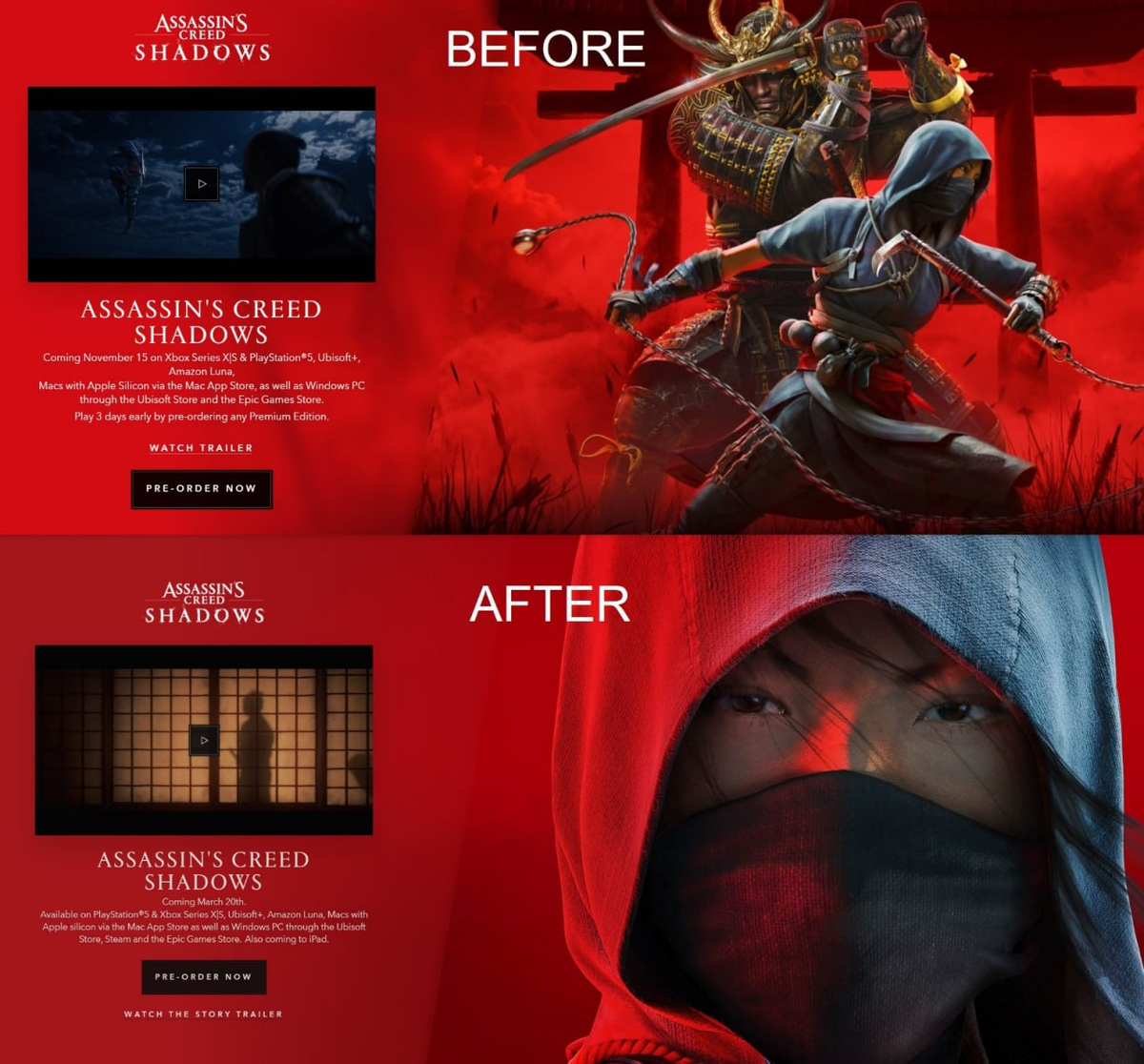 Ubisoft убрала Ясуке с баннера на официальном сайте Assassins Creed Shadows