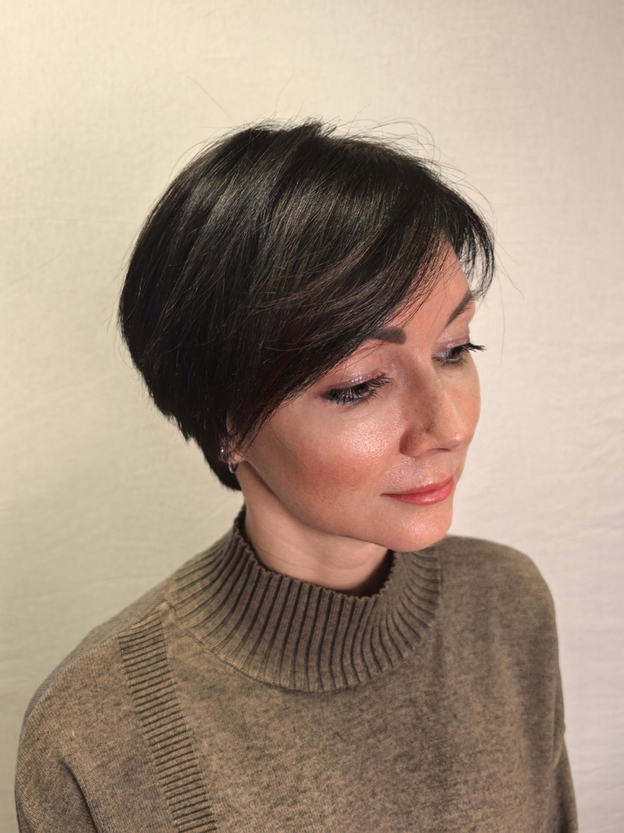 Гостья живет в другой стране, потому что доверить свои волосы там просто некому. В Израиле мастера в основном работают с густыми и кудрявыми волосами, а когда в кресло садится девушка с другой структурой, они теряются... ❗️История волос была непростая и Стрижка для нее — это не просто обновление, а необходимость, потому что с ее волосами было сложно справляться: химическая завивка, повреждения, разная плотность, а главное — отсутствие формы. 🔍 Во время диагностики я учла дистрофичность на височной зоне, где были обломанные короткие волосы. Здесь важно было правильно обыграть форму, чтобы скрыть этот нюанс и избежать эффекта "пустых" висков. Кроме того, приподнятый затылок не подошел бы, так как у гостьи стройная, худенькая шея, которой нужна была плотность для гармонии образа — Форма должна была быть живой, пластичной, а не просто «отрезанной» — тогда волосы выглядят здоровее, даже если часть из них еще остается поврежденной. Я предложила несколько форм, которые не только подче