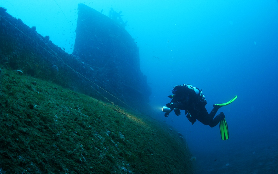 Рассказ Марко по-военному отличался краткостью. Спуск на глубину порядка пятидесяти пяти метров не занял для нас много времени. Вода была чистая и мы все прекрасно видели. Так как наш плот стоял на месте затопления подводной лодки, то наша группа встала на дно рядом с лодкой.