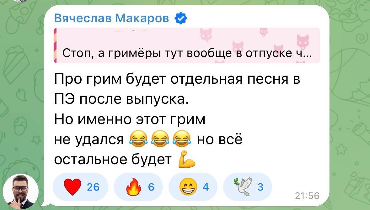 День перестает быть томным, когда нам присылают комментарии из чата Вячеслава Макарова. В этот раз в центре обсуждения посчастливилось побывать Сергею Лазареву. Уже сегодня узнаем, получилось ли у Славы вжиться в образ Сергея и сделать его красивым человеком. Продолжаем следить за ситуацией.