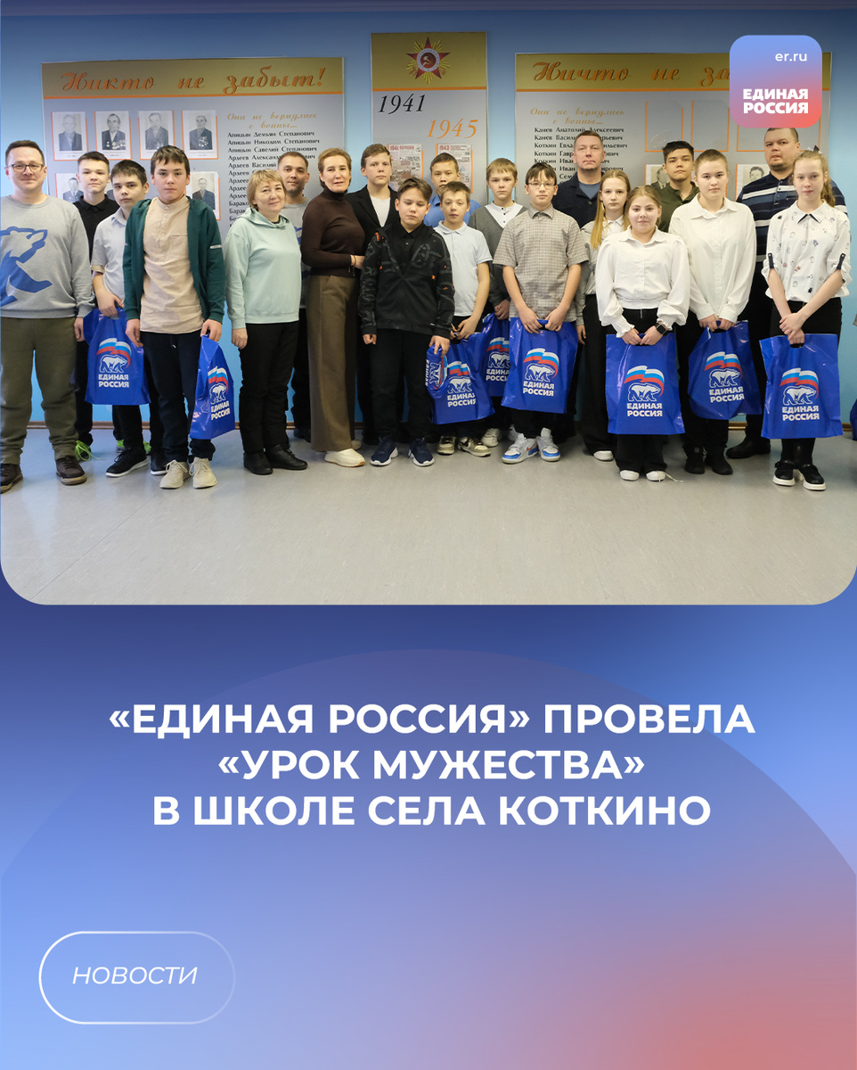 В рамках рабочей поездки в Коткино, депутатом окружного Собрания, председателем постоянной комиссии Собрания депутатов НАО Евгением Шестаковым был проведен «Урок мужества» для учеников школы.