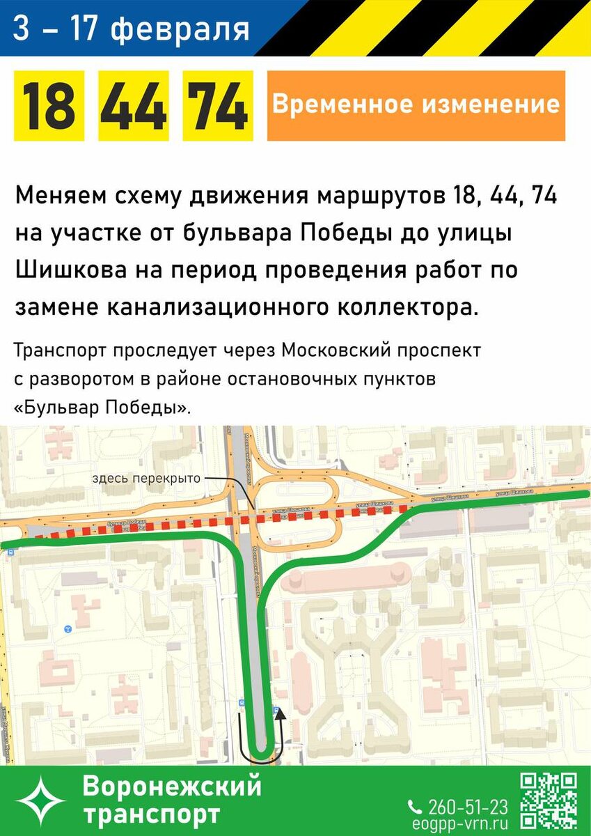 Из-за перекрытия бульвара Победы сразу три маршрута изменят схему движения в Воронеже