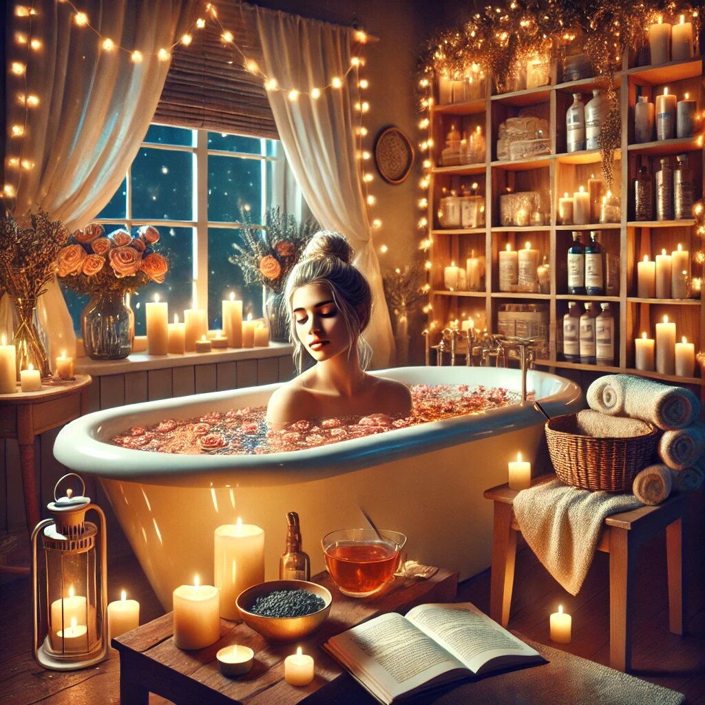 - Добавки для ванны: Добавьте морскую соль, лепестки роз или несколько капель эфирного масла.