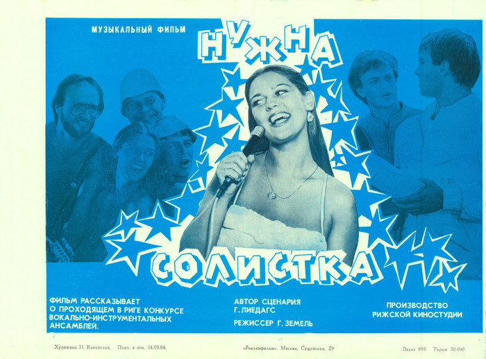 Флаконы дзинтаровских духов обнаружились в совершенно неожиданном месте - в фильме "Нужна солистка" 1984 года. В свое время этот фильм имел бешеный успех: 17 миллионов зрителей в первый год проката и приз за самую кассовую советскую кинокартину 1985 года. Словом, духи, появившиеся в кадре, получили неплохую рекламу! Сюжет фильма незамысловат: лидеру распавшегося вокально-инструментального ансамбля нужно в течение дня снова собрать музыкантов и помириться со своей бывшей девушкой-солисткой, чтобы вечером того же дня выступить на музыкальном конкурсе. Ни с какими особыми сложностями по мере прохождения этого квеста молодой человек не сталкивается: все на всё согласны, ни у кого не оказывается более срочных дел, девушка охотно с ним мирится, одолженные концертные костюмы не требуют подгонки, а погода позволяет репетировать в купальниках прямо на пляже. Конкурс предсказуемо выигрывается, на горизонте свадьба, а Лелде Викмане в роли солистки умопомрачительно хороша. Фильм, лишенный малейших