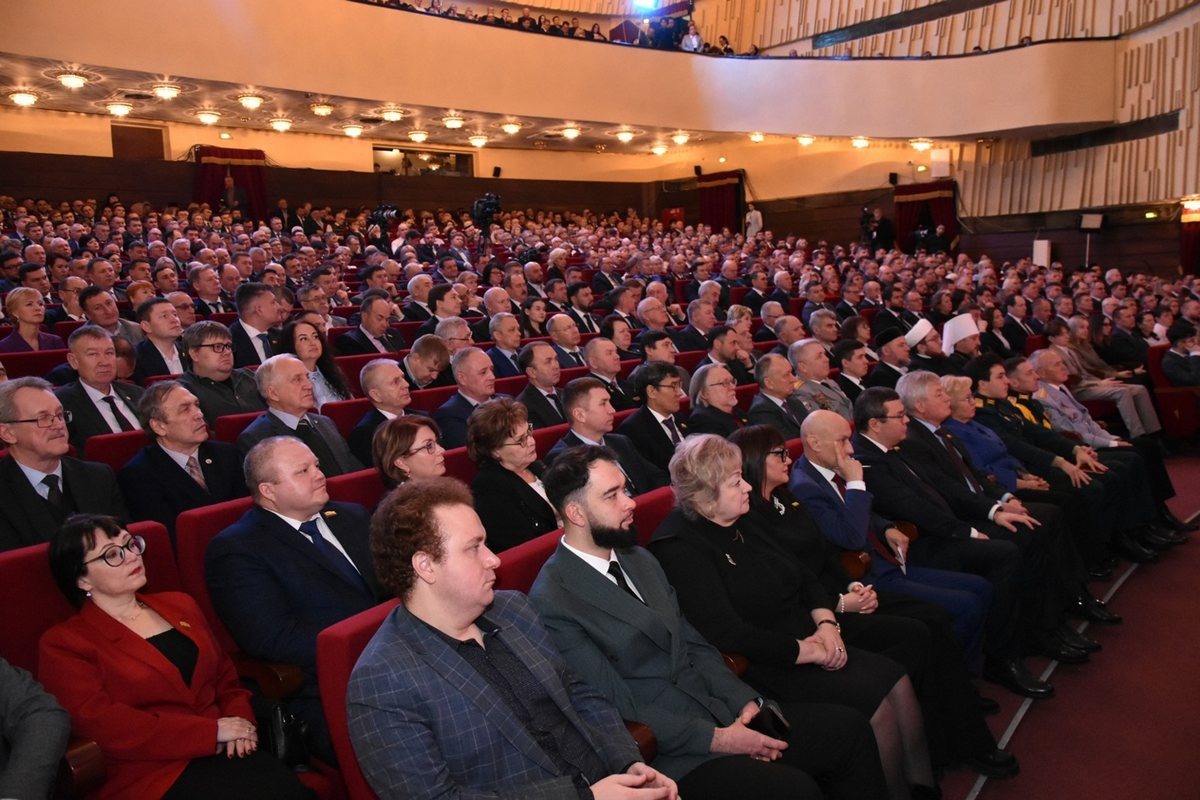 Многочисленных гостей принял Театр оперы и балета. Последний январский день оказался судьбоносным: подводились итоги прошлого года, прокладывались векторы в будущее. А потому даже на балконе не было ни одного свободного места. Всем важно слышать пульс республики. Кому как не нам, ее жителям, сверять по нему свои дела, заряжаться энергией развития и тоже смело идти вперед – вместе со своим родным краем.
