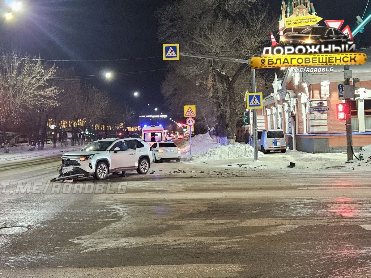 В центре Благовещенска произошла авария. Вечером, 31 января, на пересечении улиц 50 лет Октября и Горького произошло дорожно-транспортное происшествие. Видео, снятое очевидцами, разместил телеграм-канал Autoroadblg. На кадрах виден легковой автомобиль с искореженной передней частью. Рядом находятся полицейская машина и карета скорой помощи. Еще один автомобиль стоит на тротуаре в достаточном удалении от проезжей части. Другой городской паблик, «Дорожный Благовещенск», публикует фото обоих автомобилей. На одном из них видно, что машина на тротуаре частично въехала в сугроб, ее передняя часть также серьезно повреждена. Фото t.me/roadblg Видео t.me/autoroadblg Читать на сайте ТЕЛЕПОРТ.РФ Еще больше новостей в нашем телеграм-канале https://t.me/amurobl