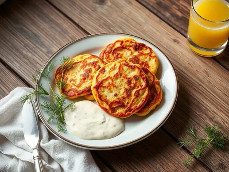 Нежные овощные оладьи с чесночным соусом — идеальный завтрак для яркого утра