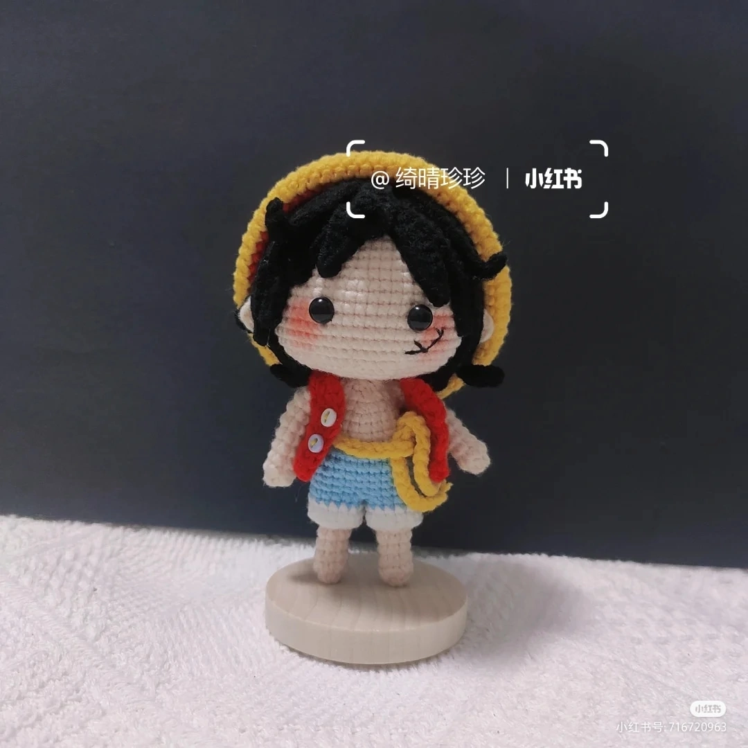 Голова (телесным) 1. 6сбн в кольцо 2. 6 пр 3. (1сбн, пр)*6 4. (1сбн, пр, 1сбн)*6 5. (3сбн, пр)*6 6. (2сбн, пр, 2сбн)*6 7. (5сбн, пр)*6 8. (3сбн, пр, 3сбн)*6 9-10. 48сбн 11. (7сбн, пр)*6 12-13. 54сбн 14. (4сбн, пр, 4сбн)*6 15-18. 60сбн 19. (4сбн, уб, 4сбн)*6 20. (7сбн, уб)*6 21. (4сбн, уб)*8 22. (2сбн, уб)*10 23. (1сбн, уб)*10 24. 10 уб 25-28. 10сбн Ряды 25-28 вставить внутрь головы Руки (телесным) 1. 6сбн в кольцо 2-9. 6сбн Уши (телесным) 1. в кольцо сбн, пссн, ссн, пссн, сбн Ноги и тело (телесным) 1. 6сбн в кольцо 2. 5сбн, пр 3-4. 7сбн 5. 6сбн, пр 6-8. 8сбн Первую ногу закончить здесь со второй ноги продолжать вязать тело. Набрать 3 ВП, присоединить 1 ногу 9. 8сбн по 1 ноге, 3сбн по ВП, 8сбн по 2 ноге, 3 сбн по ВП 10. (сделать по 1 прибавке с обеих сторон) 24сбн 11-13. 24сбн 14. (сделать по 1 убавке с обеих сторон) 22сбн 15. сбн, (3сбн, уб)*4, сбн 16. 18сбн 17. ввязать руки по сторонам, 30сбн 18. (сбн, уб, сбн)*7, уб 19. уб, (сбн, уб)*6, уб 20. 7 уб 21-25. 7сбн Жилет