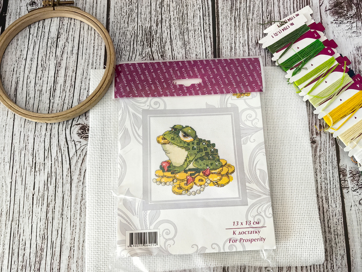 Вот и пролетел январь, так что сегодня я решила повести итоги своего вышивального месяца. Этот канал о моей жизни, о моих увлечениях и том, что меня окружает. Огород и цветы, вышивка и вязание, шитьё и кулинария, а также интересные места Иркутска и окрестностей, иногда посещение музеев и собака по имени Ласка. Живу в Прибайкалье Сначала, конечно, расскажу о готовой работе. Это набор от фирмы "Риолис", под названием "К достатку". Небольшой совершенно наборчик, всего 13 на 13 см, но вышивался он у меня на удивление долго. Начала я его вышивать 2 января 2025 года, а закончила - 28 января. Яркая зелёная денежная жаба, сидящая на монетках и драгоценных камнях и держащая монетку во рту, на этой вышивке получилась какая-то задумчивая или даже пребывающая в полной нирване, "прибалдевшая". Этот взгляд с поволокой... По самой работе. В наборе была канва 14 каунта, 11 цветов ниток мулине, цвето-символьная схема и игла. Вышивала я её на небольших круглых деревянных пяльцах Вся работа вышивалась