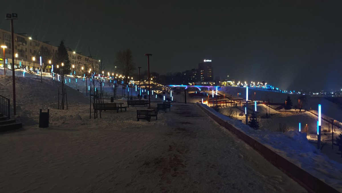 Первый пост находится по ссылке В комментариях к посту рекомендовали посетить город в зимний период, что и решено было сделать, тем более что бонусов РЖД накопилось как раз на 2 билета туда-обратно. Сразу хочется отметить великолепную погоду в -2С и ветер, который ,кажется хочет содрать кожу с лица. После заселения в отель «Азимут», что находится на набережной Федоровского и имеет отличные виды на реку, отправились на прогулку по набережной, по сути своей повторяя маршрут описанный в первом посте. Иллюминация в городе - мое почтение. А вот дальше я немного не понял, так как саммит БРИКС проводился в Казани, но эмблема оказалась в Новгороде Походив по вечернему городу и отморозив всё, что только можно, мы отправились на ужин в кафе дикой кухни «Мох». Всем рекомендую, особенно суп-пюре с мясом кабана в буханке хлеба. На следующий день была запланирована обзорная экскурсия по городу, пешеходно-автобусная, если так можно сказать. Автобус привозил к точке А, далее группа с экскурсоводом пеш