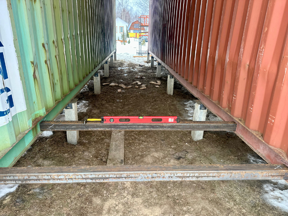 Случилось знаменательное событие в строительстве нашего уникального дома – появились первые окна. Казалось бы, такое событие должно вызывать радость и удовлетворение. Однако, к сожалению, мы не испытываем эйфории от этого достижения. Причины такого состояния я обязательно объясню, но для полноты картины необходимо обратиться к предыдущим этапам строительства. Прежде чем перейти к окнам, стоит рассказать о том, как наш дом обзавелся полом, точнее – нижней связкой пространства между двумя контейнерами. Для создания прочного и надежного основания было решено приварить к контейнерам металлические лаги из профильной трубы сечением 8 на 8 см. Артём точно рассчитал необходимое количество материала и оперативно нарезал отрезки нужной длины. После завершения работ по крыше, работы на земле стали проходить значительно легче и проще. Сразу же супруг приступил к зачистке заводской краски с поверхностей контейнеров. Стоит отметить, что краска на контейнерах отличается особой плотностью и соста