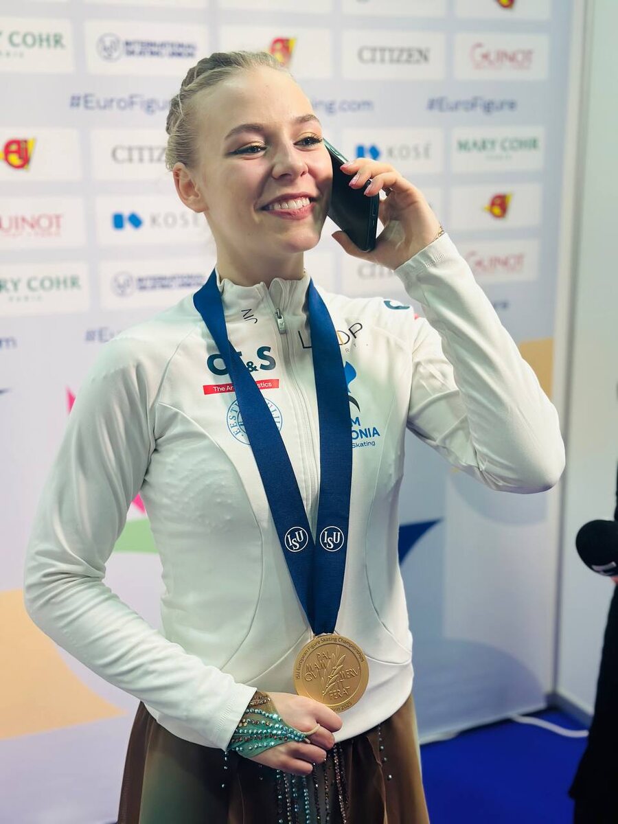 Грузинская федра фигурного катания недовольна серебром Губановой на Чемпионате Европы. Женщины ра́зыграли комплект медалей в Таллине на ЧЕ. Уже традицией стало нытье про то, как Губанову засуживают. Ну так вчера ей в лукошко навалили карельских боровиков,да и их не хватило для победы. Чемпионкой Европы стала эстонская фигуристка Нина Петрыкина. Наша бывшая россиянка, а теперь грузинка Настя Губанова проиграла 10 баллов эстонке. Шансов победить у Губановой не было изначально. Слабая техника и заметный регресс. Баллы Настя получила лучшие в карьере, а вот прокат был слабым. Снова недокруты и неуверенные прыжки, потеря баллов на непрыжковх. И технически Настя проигрывает произвольную на 10 баллов. Третья Нина Пензерронне. Бельгийка тоже недокрутила многие прыжки и потери стали колоссальные. Ее коллега Луна Хендрикс могла бы подняться выше, но увы сезон закрыла раньше из-за травмы. На фотографии выше Нина Петрыкина разговаривает с президентом Эстонии. Глава государства поздравил че