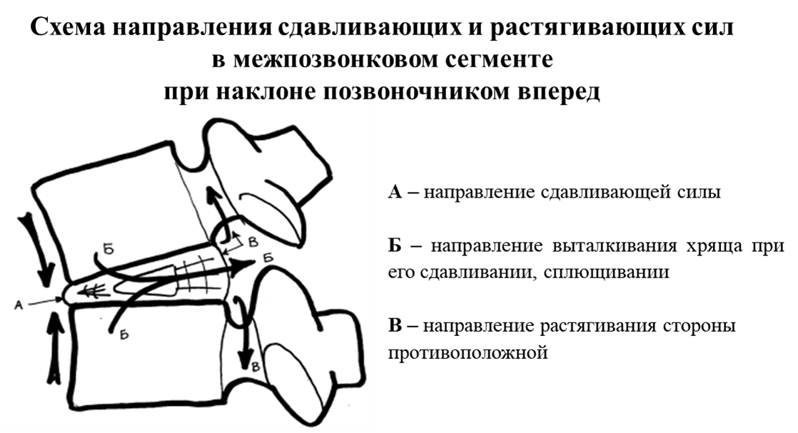 Межпозвонковые грыжи встречаются в нашей жизни всё чаще и чаще. Соответственно растёт армия врачей, занимающихся лечением при этом болезненном состоянии. Как разобраться в том, понимает ли врач в своем деле, или просто выдаёт себя за знатока перед несведущим пациентом? Укажу один из верных признаков малокомпетентного врача/врачей с большими претензиями преподнести себя окружающим как «знатока»? Это - уверенно произносимые рекомендации псевдолечебных/псевдополезных наклонов и вращений головой при проблемном шейном отделе позвоночника. Особенно при межпозвонковых грыжах! Что вообще недопустимо! Или рекомендации наклонов и растяжений позвоночника при проблемах в пояснице. Чем эти наклоны и вращения опасны? При наклоне в любую сторону часть межпозвонкового хряща, расположенная со стороны направления наклона, плющится между позвонками, а противоположная соответственно растягивается. В результате наблюдаем «эффект тюбика» с зубной пастой: – сдавливая тюбик с одной стороны мы добиваемся того