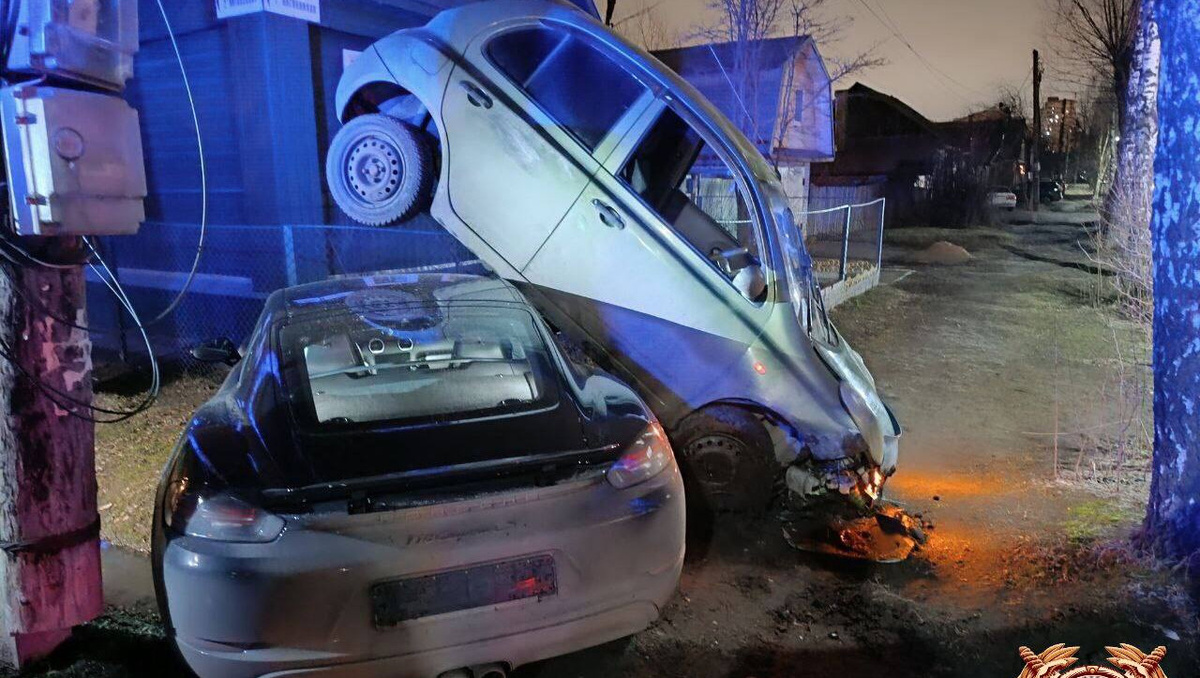 Поздно вечером 31 января в Твери, на улице Первая Вагонников у дома 20 столкнулись две иномарки Porsche и Nissan. Автомобиль Nissan после столкновения встал почти вертикально, на передние колеса. Как сообщает Управление Госавтоинспекции по Тверской области, оба водителя трезвые. В соцсети пользователи сообщают, что из-за этой дорожной аварии дома микрорайона остались без света.