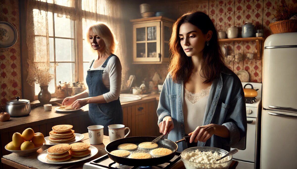 Через двадцать минут кухня наполнилась запахом свежих сырников. Галина тихо помогала накрывать на стол: достала сметану, нашла в шкафу чистые тарелки. Со стороны можно было подумать, что две подруги просто готовят завтрак. Скандала как не бывало — по крайней мере, на тот момент.