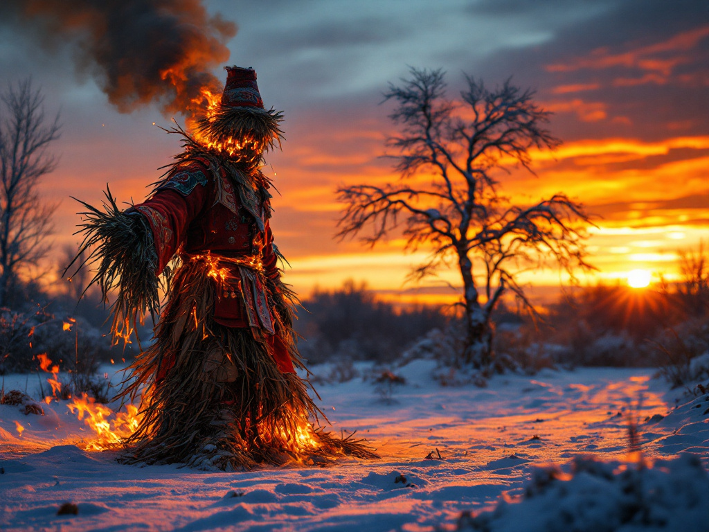 - Сжигание чучела – файнал босс Масленицы. Кульминация всего праздника! Чучело, символ уходящей зимы, отправляют на костер с почестями и проклятиями (в адрес зимы, разумеется!). Огонь очищает землю от зимней скверны, призывает весну, обещает богатый урожай. Пепел развеивают по полям – для плодородия (и для садоводов-огородников – отличное удобрение!). В общем, зрелище эффектное и символическое до мозга костей.